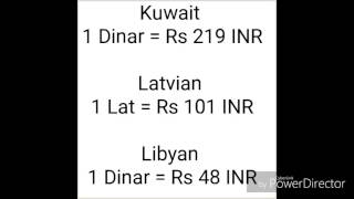 All countries currencies in indian rupees